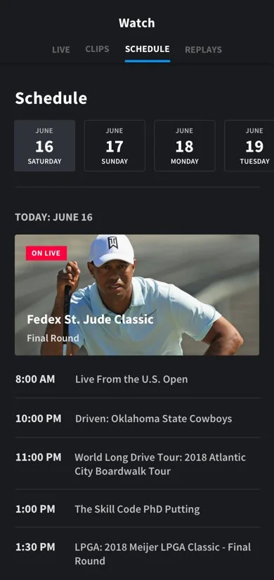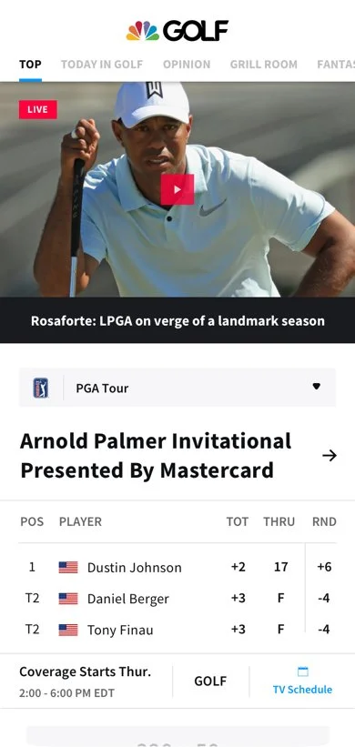 Following my work on the Golf Channel website, I transitioned to the app. During the app's design phase, I prioritized maintaining consistency with the styles found on the Golf Channel website and on-air broadcasts.