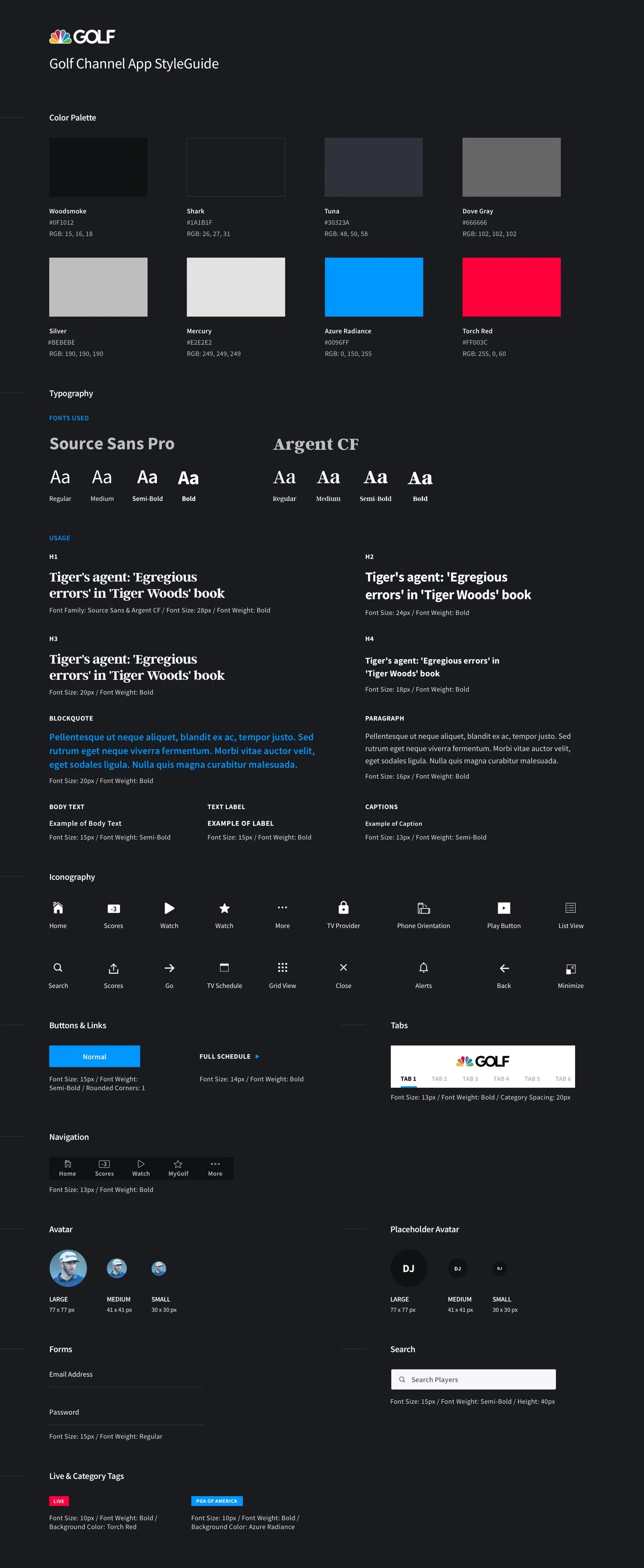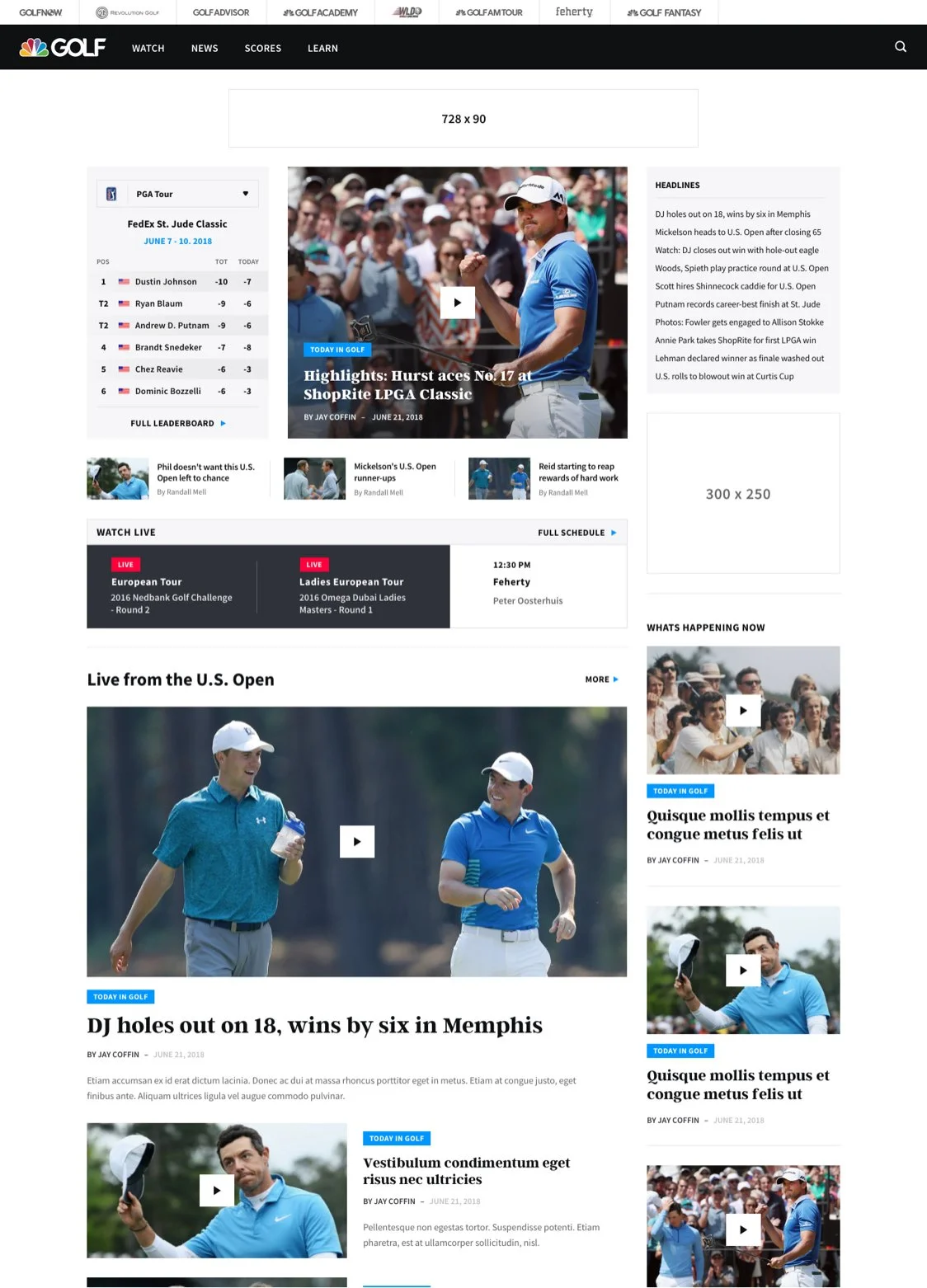 I undertook the responsibility of redesigning Golf Channel's website and app, aiming for a sleeker, more modern appearance while crafting distinctive brand elements. The prior design, being outdated, necessitated a fresh look and feel.
