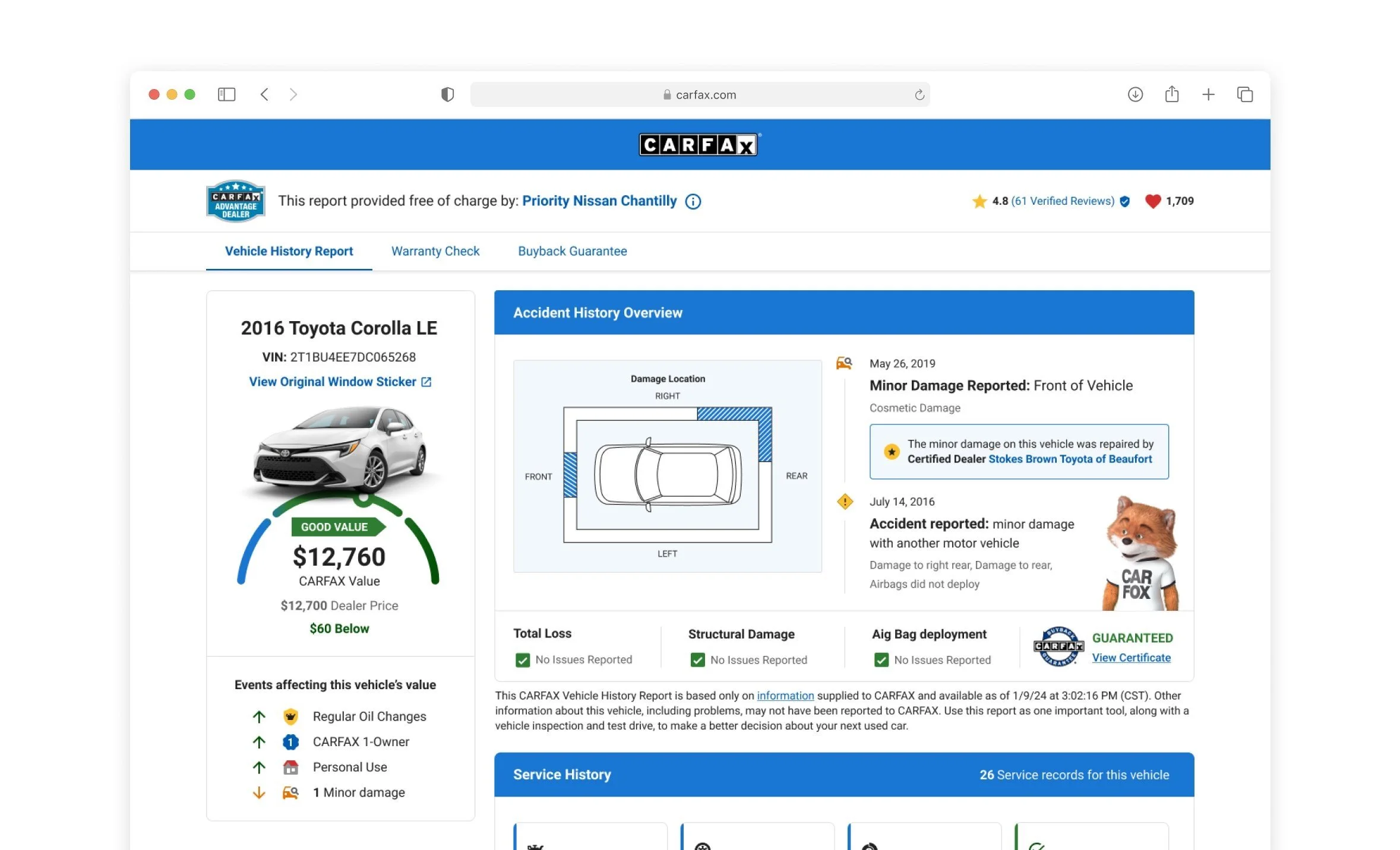 In light of our research, the report contains a wealth of data, and both our consumers and dealers express a desire for a streamlined and more efficient way to access accident and service information.