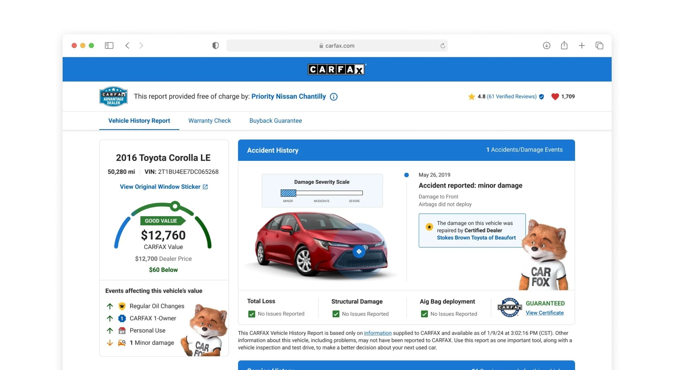 CARFAX is renowned for its detailed vehicle history reports. When a consumer considers purchasing a car, they can easily obtain a vehicle report by purchasing one or asking the dealer.