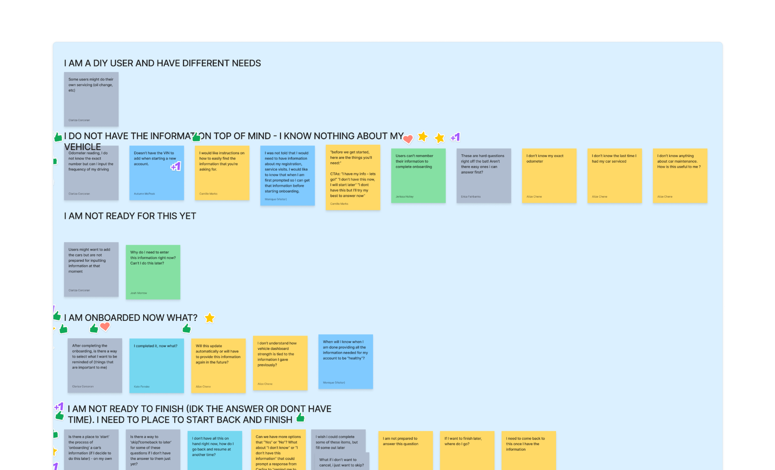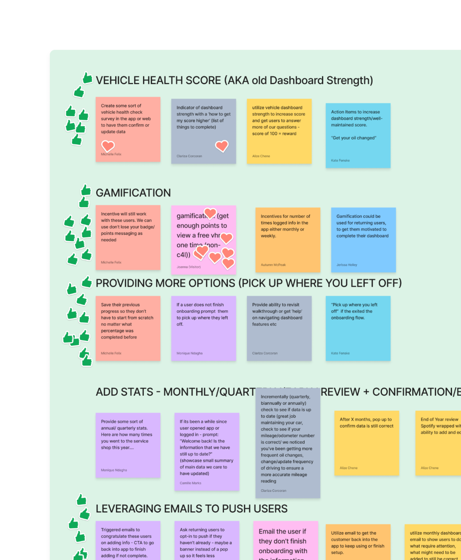 In this sprint, we specifically addressed questions like "How might we enhance onboarding engagement to reduce drop-off?" and "How might we effectively communicate the value of Car Care to first-time users?".