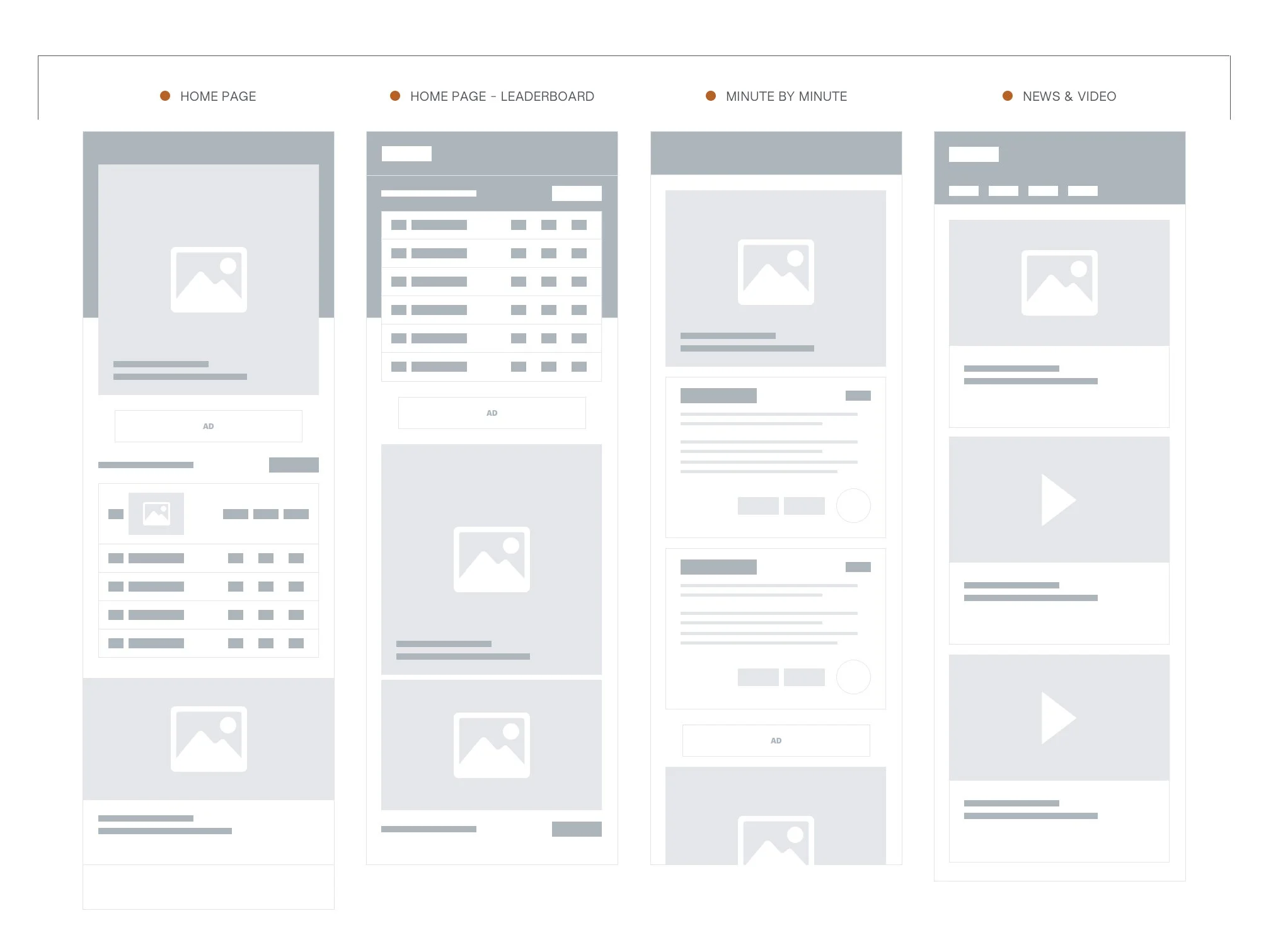 I kicked things off by crafting low-fidelity wireframes for both PGA and Ryder Cup. Collaborating closely with the Product Owner, we brainstormed layouts and ideas. Striving for consistency between the two sites, I managed to reuse around 90% of the same wireframes.