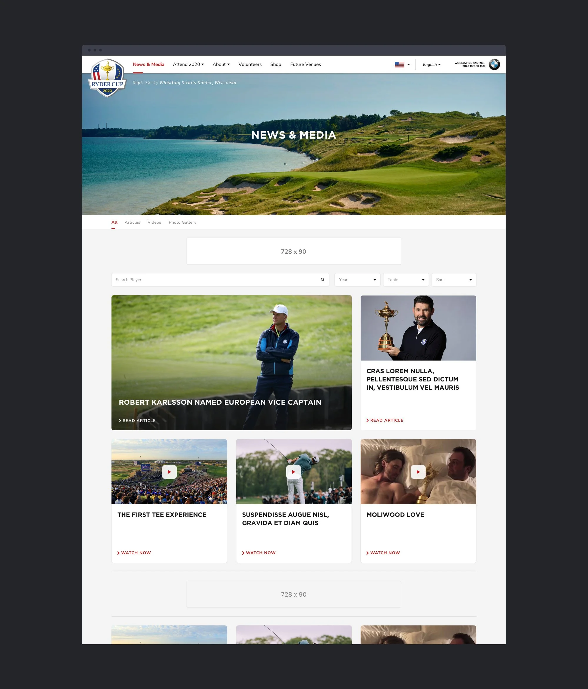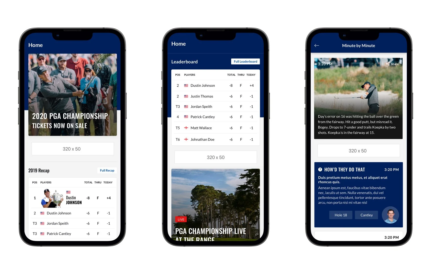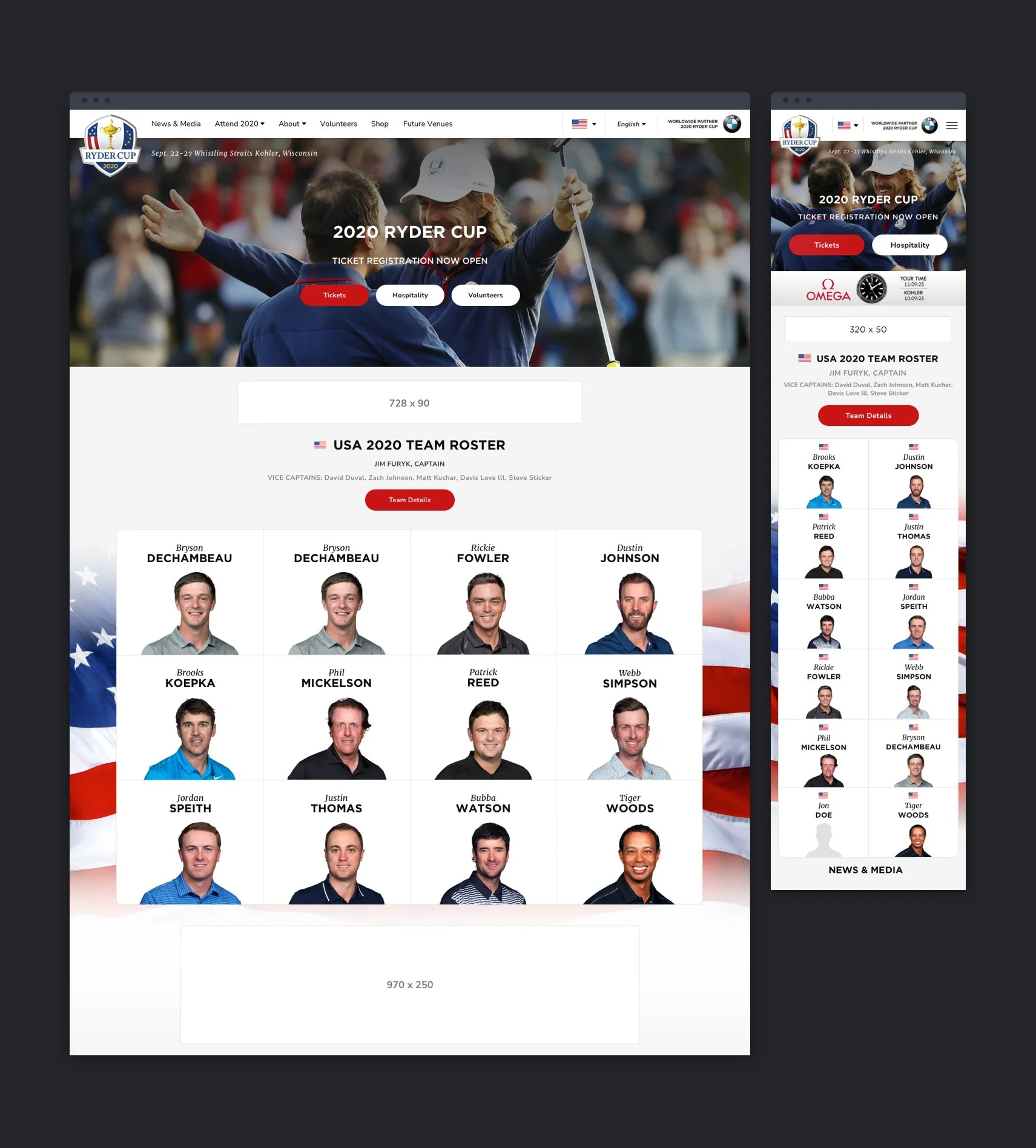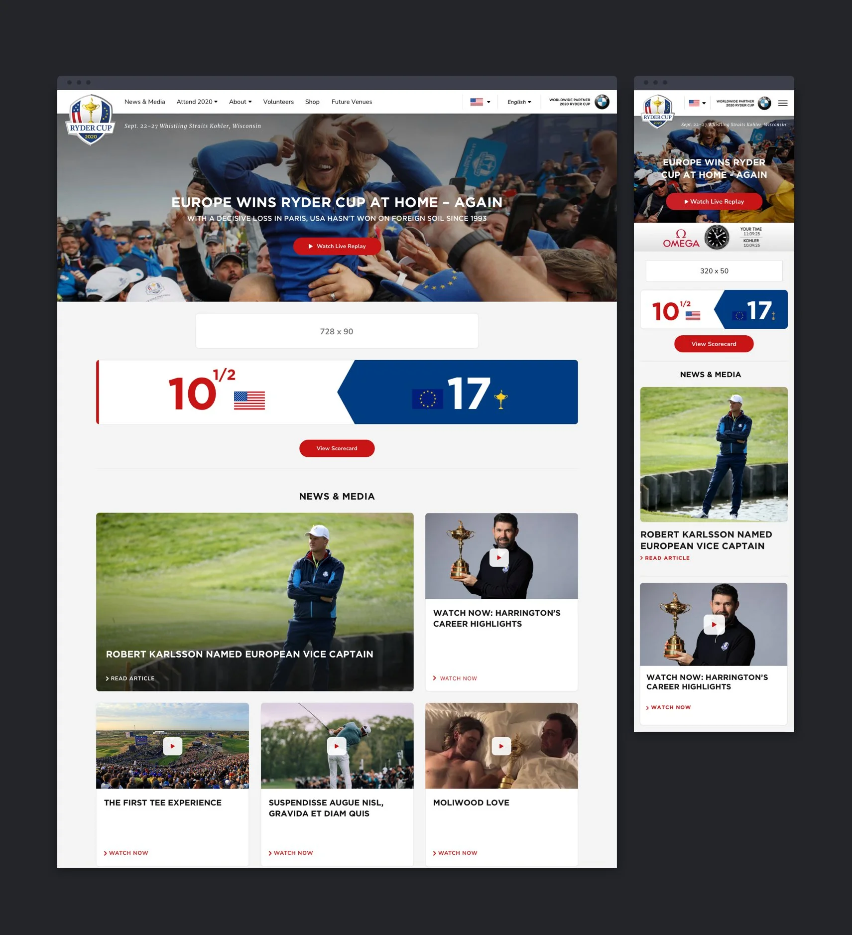 In July 2019, the broadcasting rights for PGA Championship and Ryder Cup transitioned from Turner Sports to NBC. Subsequently, my team was assigned the responsibility of redesigning the websites and mobile apps for both the PGA Championship and Ryder Cup in preparation for the 2020 events