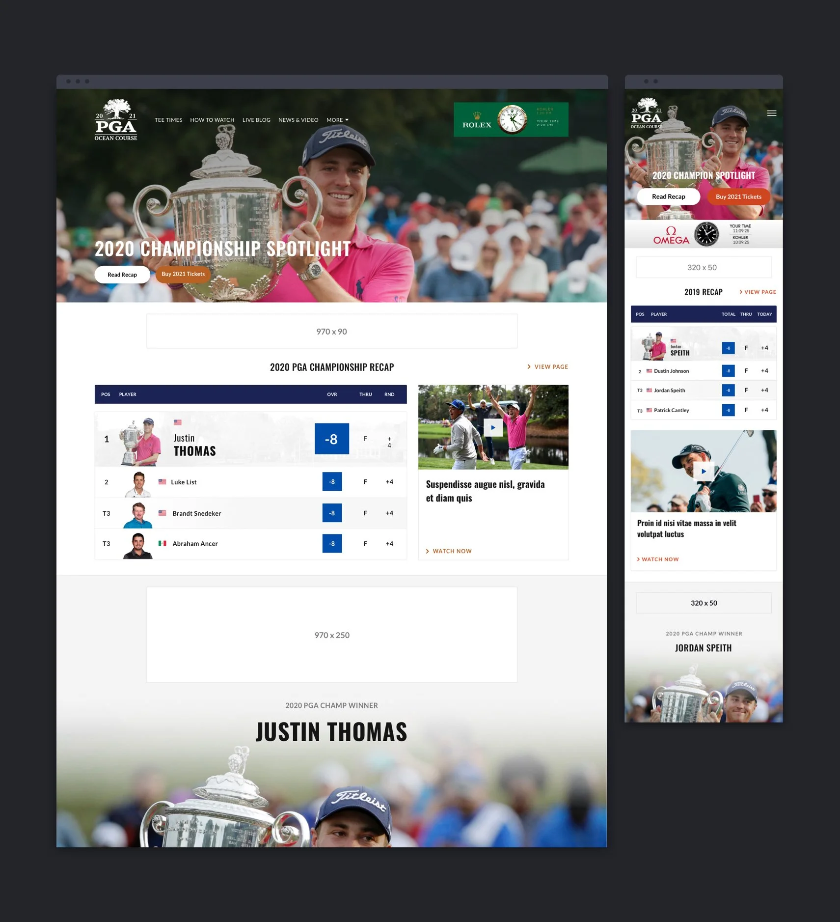 When I started the project, I saw that the old designs only cared about what the business needed, not what users needed. The PGA Championship and Ryder Cup websites and apps didn't match up well.