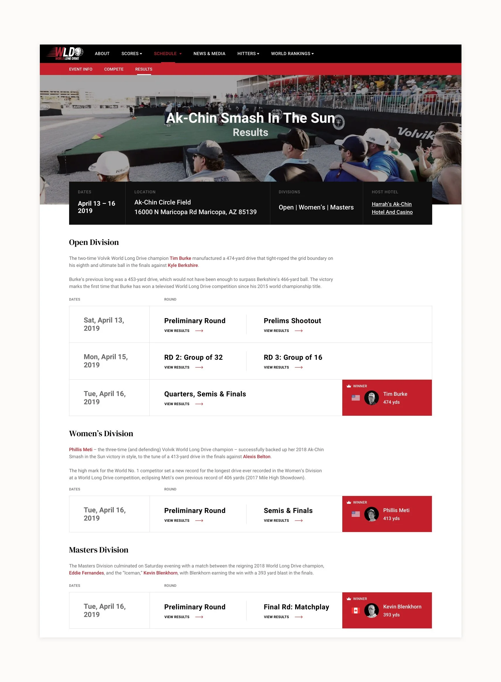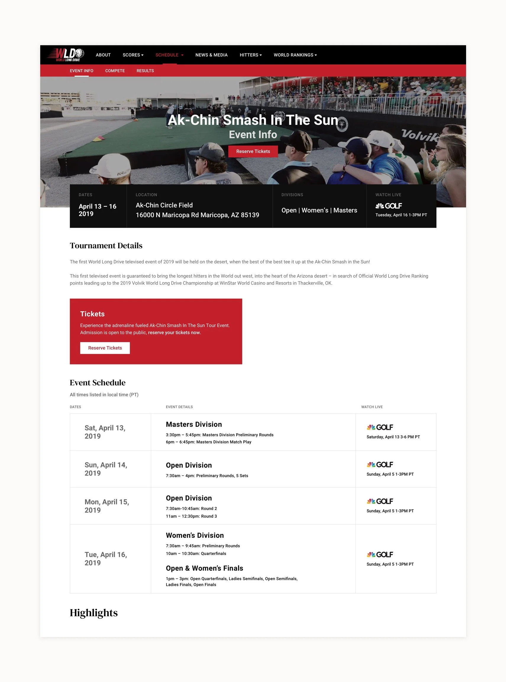 With this redesign, there was a lot of room for new ideas. With this exciting long-drive tournament, I wanted to make sure the colors and text were bold and made a statement.
